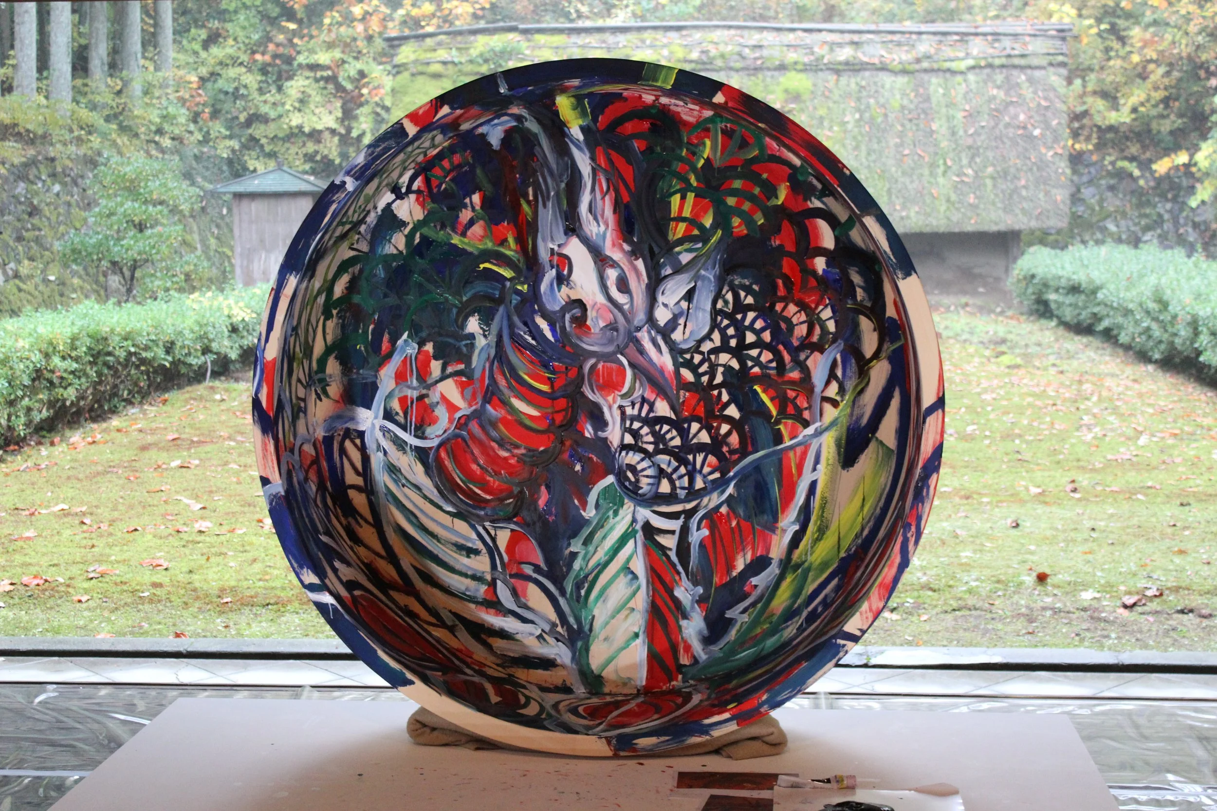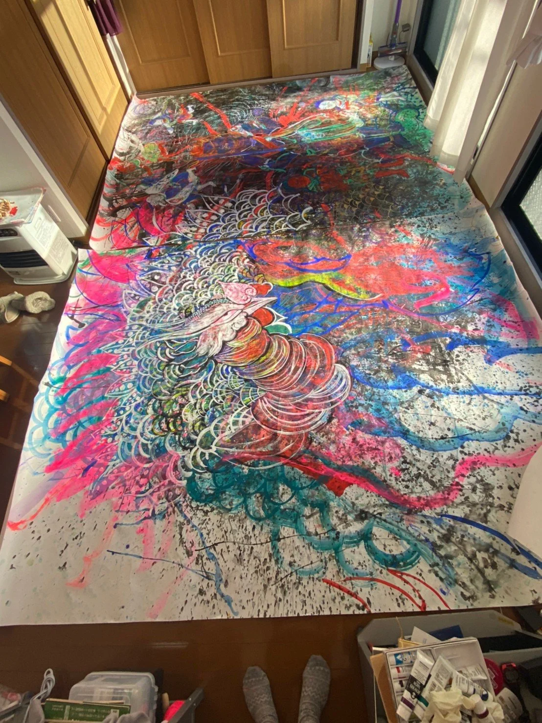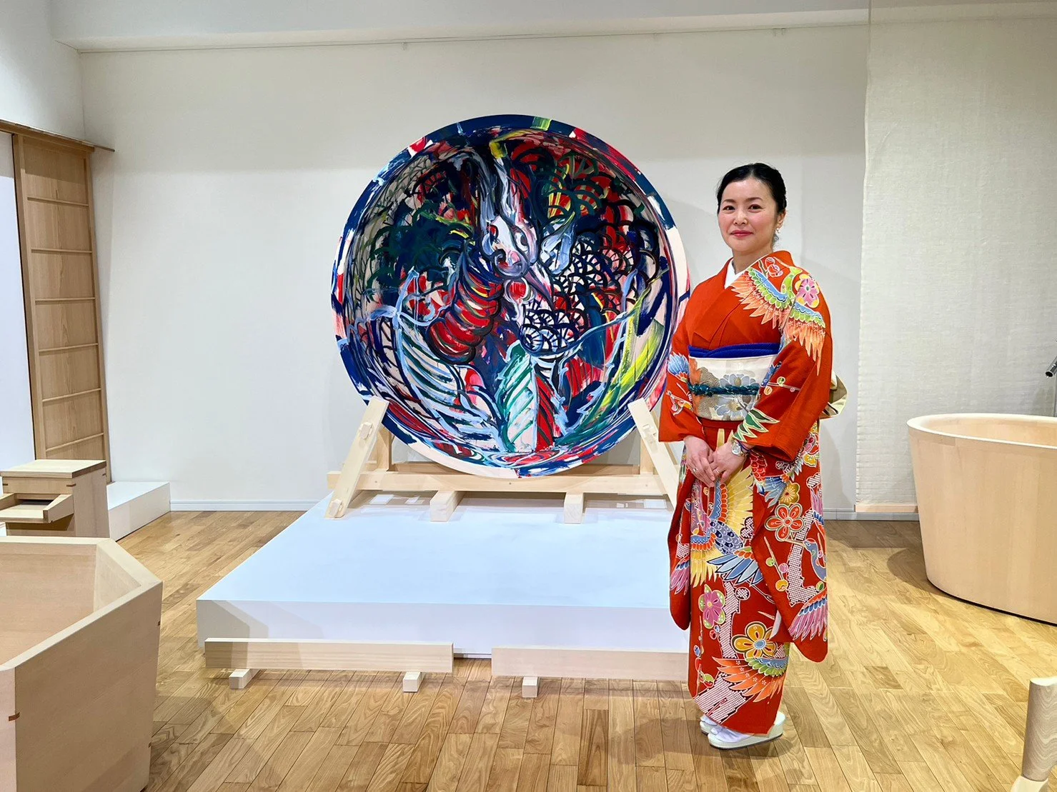 I am thrilled to announce that my ongoing exhibition is currently being held in Tokyo. The exhibit showcases some of my latest works which I collaborated with HINOKISOKEN. The work is from my performance at the Museum Meijimura last November. The work, Phoenix was painted on a traditional Hinoki Bathtub made by a skilled craftsman, using a very precious and expensive material that is considered taboo to paint on. Through this exhibition, we aimed to challenge this taboo and create a new tradition through art. You can view this work at the HINOKISOKEN gallery in Jinbocho, Tokyo until May 27th. We had a talk event for the preopening and the video will be coming soon.